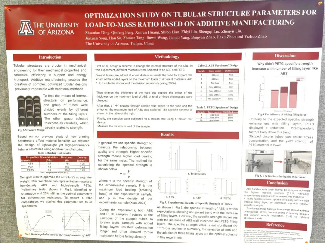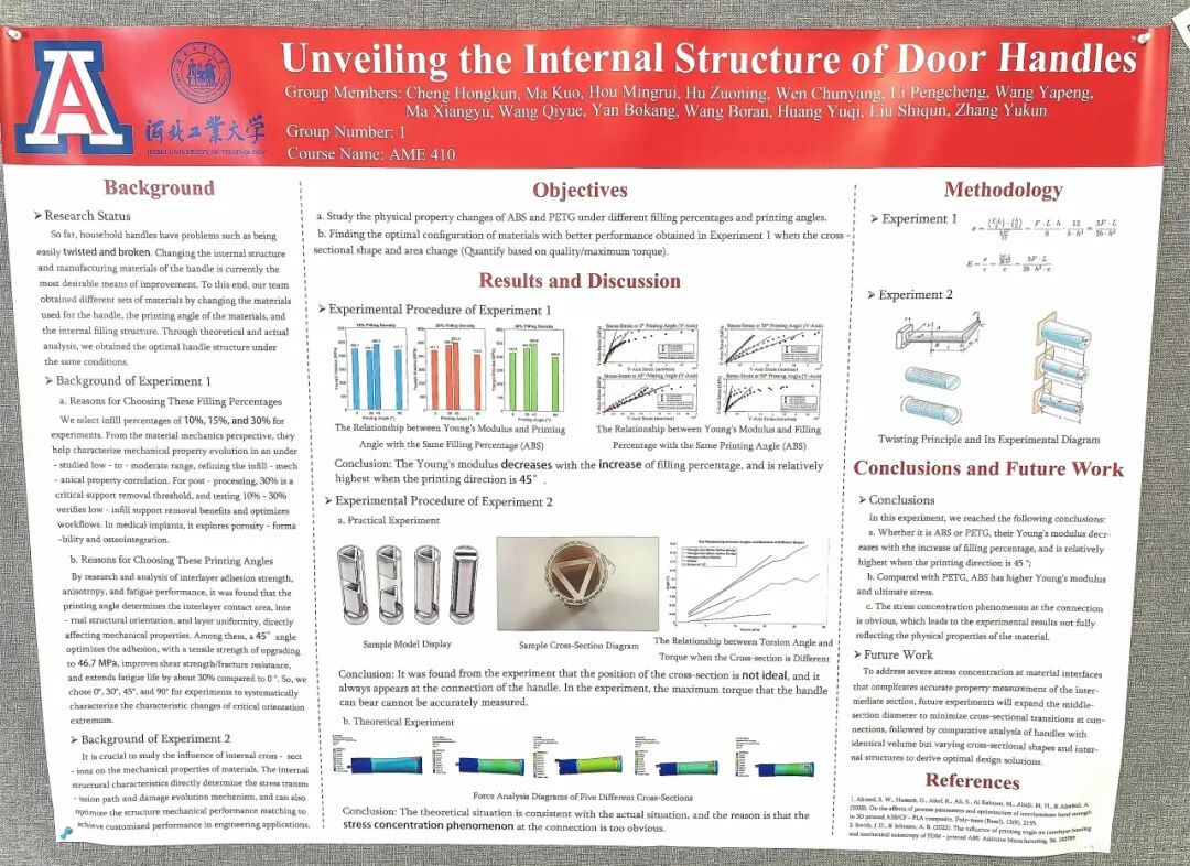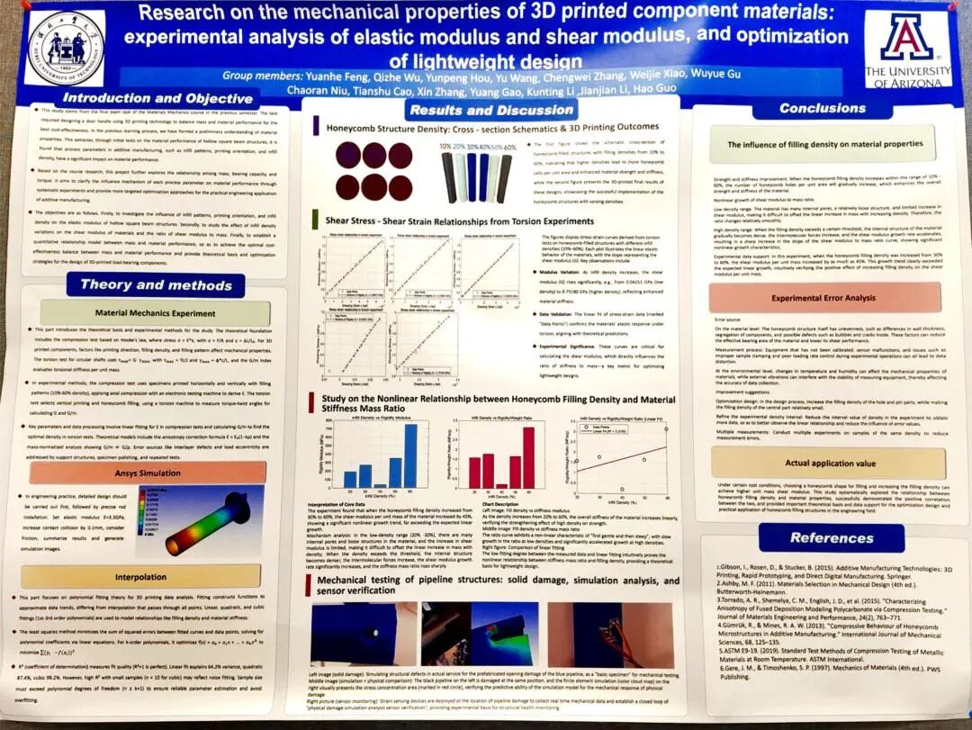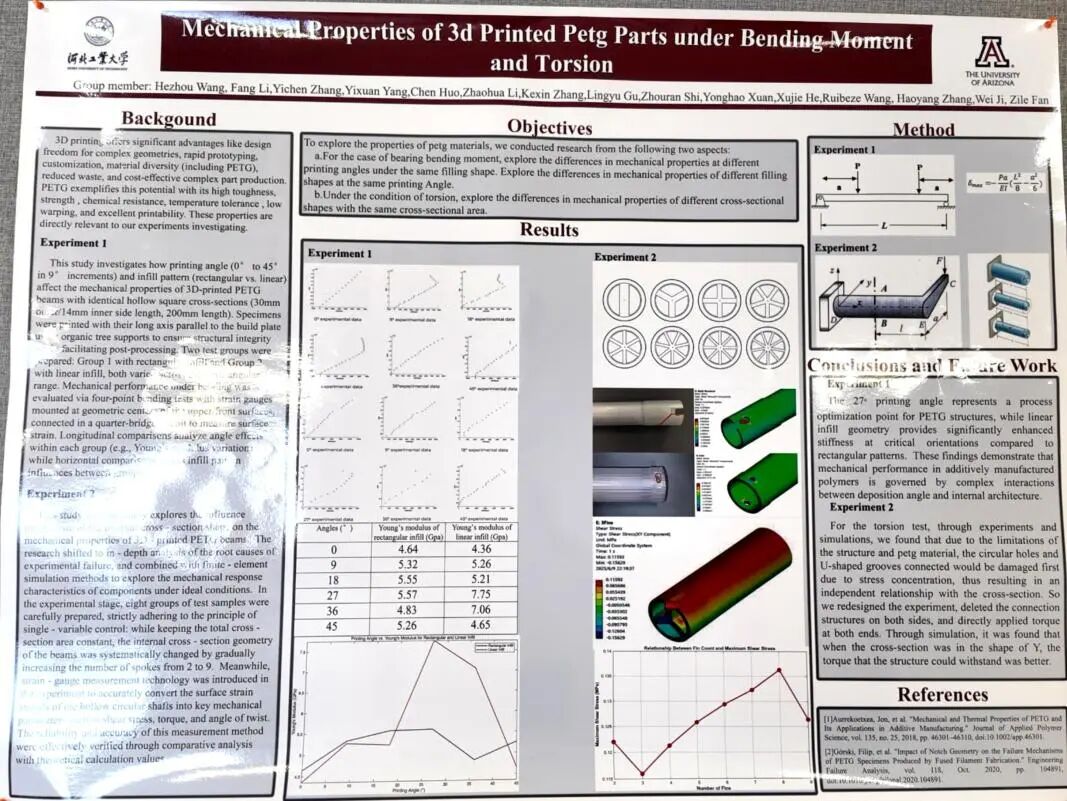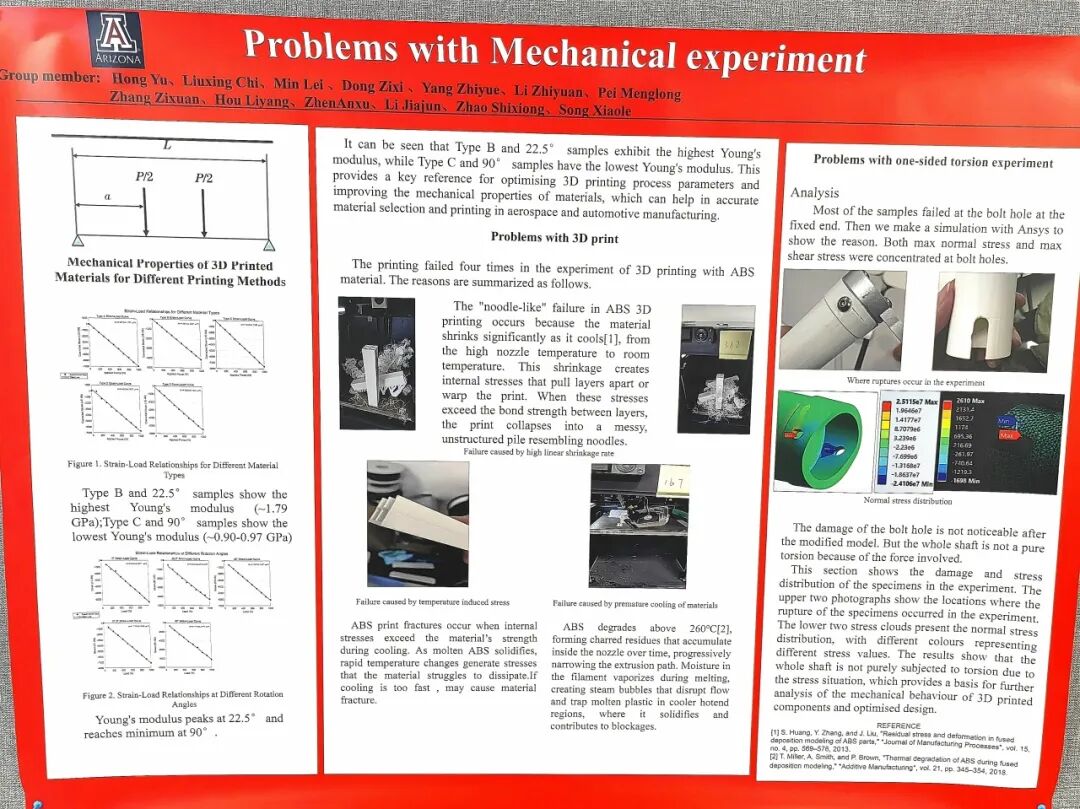 6月16日下午,亚利桑那工业学院22级机械设计制造及其自动化专业的同学们在学院楼三楼完成了一场Additive Manufacturing(增材制造)课程的期末海报展示活动。22级的Additive Manufacturing课程由亚利桑那大学国际教授王雪晶执教。活动邀请即将毕业的机械系21级同学,作为同行评委给与专业意见与评价。