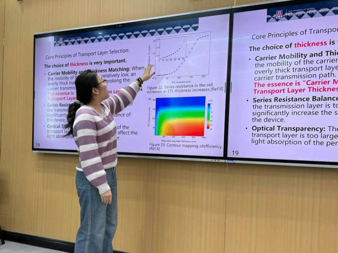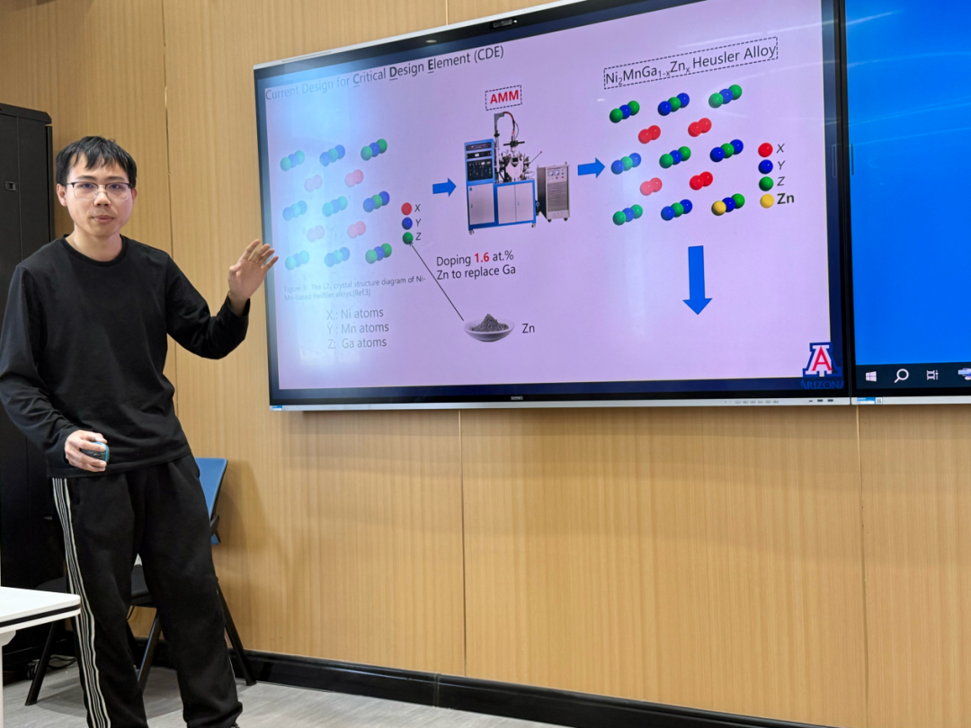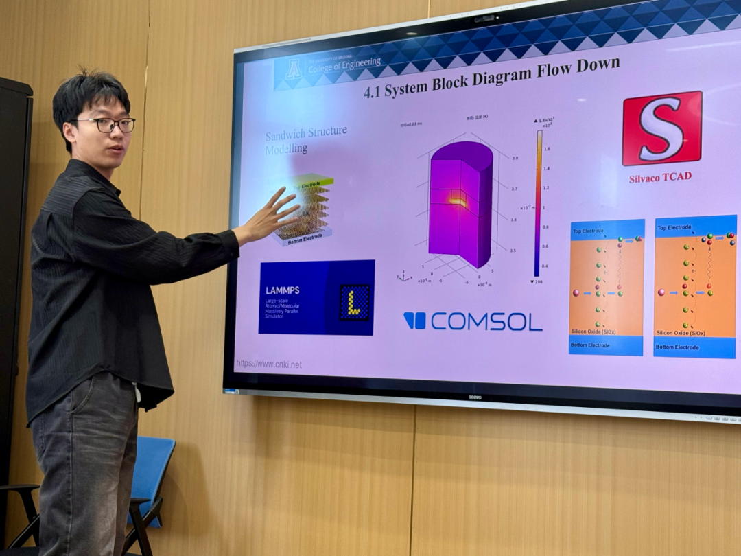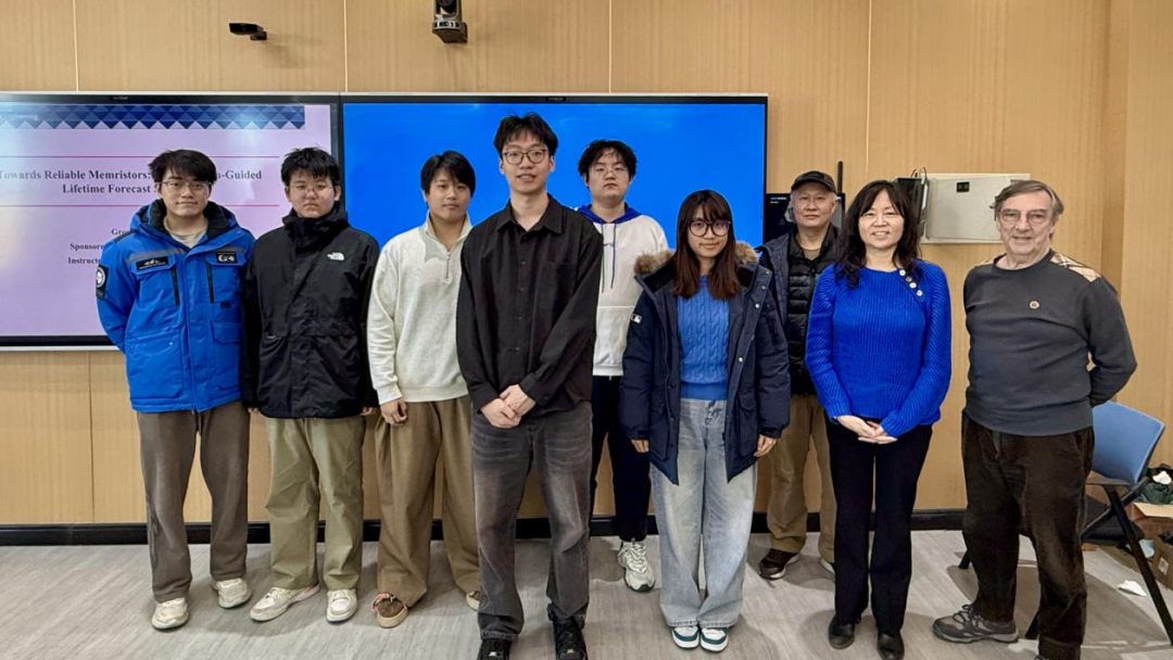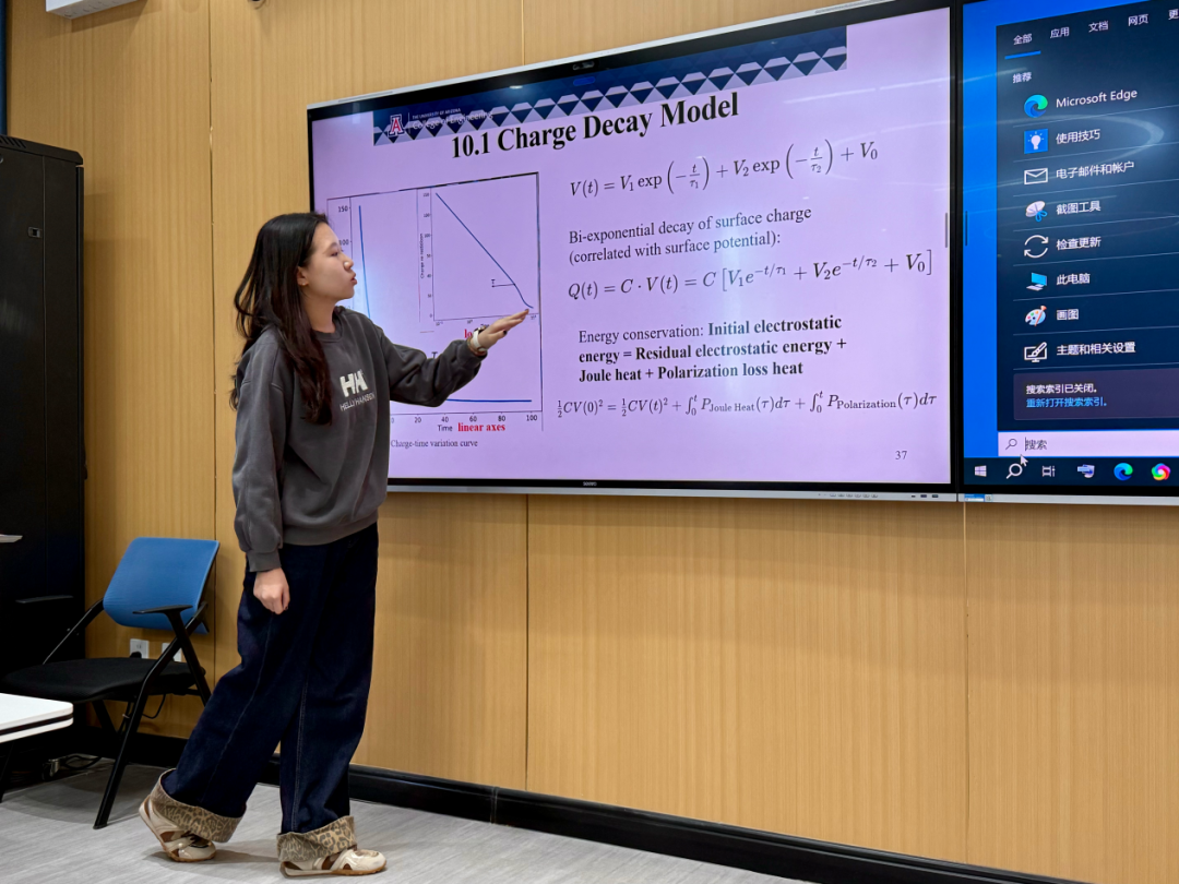 在材料物理专业本次跨学科设计A毕业设计实践中,亚利桑那大学Guiru Nash Liu教授、Philip Nash教授与罗鸿志、陶俊光、阎文博、李薇薇、刘方舟、刘丛这些校内导师组成国际化-交叉化联合指导矩阵。值得一提的是,10组课题中有9组由导师结合各自学术难题定向抛出,第6组“基于位错密度的忆阻器可靠性预测软件”则由学生自主阅读数篇文献后独立命题——该器件被视为模拟大脑突触的核心元件。其余课题同样锋芒毕露:第2组“镍锰基赫斯勒合金空调制冷/制热系统”成功构建固态制冷原型,正准备申请国家发明专利;第8组“电极界面处电化学析氢的微尺度离子动力学模拟”构建低能耗光电催化体系实现高效水分解制氢,为下一代清洁能源提供新路线;第1组“发展高强度与优异软磁性能Fe-P-C非晶线材大规模连续化生产的工艺”与第9组“研究稀土元素对Fe-P-C非晶合金的结构、非晶形成能力和软磁性能产生的影响”形成非晶合金“工艺—性能”闭环;第3组“钠离子电池中煤基硬碳阳极的研究”为低成本储能提供碳素解决方案;第4组“单光子探测系统”突破极限弱光探测瓶颈;第5组“提高钙钛矿太阳能电池效率的研究”瞄准新一代光伏技术;第7组“探究FEP薄膜表面电位的时空演变规律”揭示介电薄膜电荷演化机制;第10组“基于光伏电荷打印的水性微流体机器人”将光伏电荷打印与微流体操控融合,形成“材料—能量—信息—生命”全链条交叉格局。