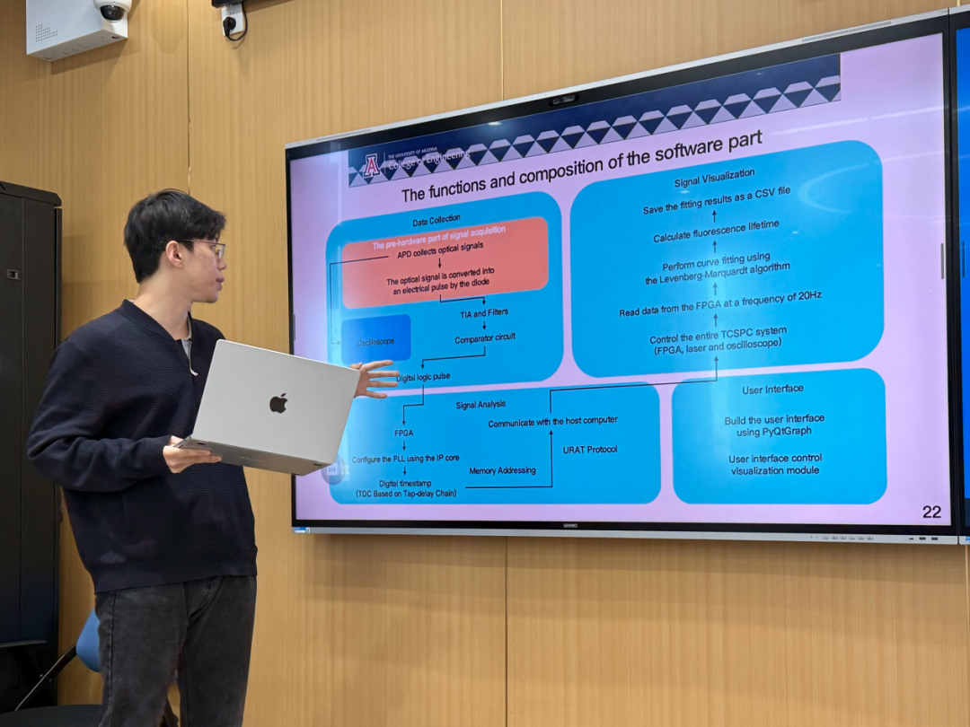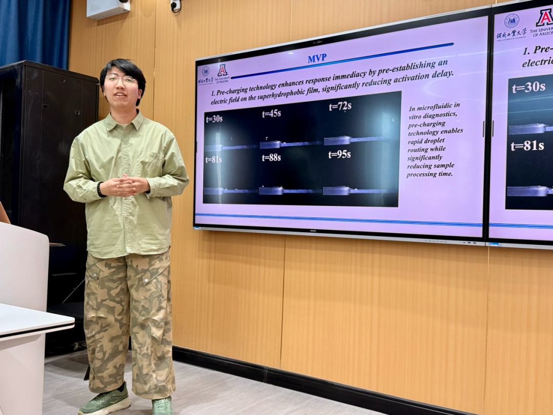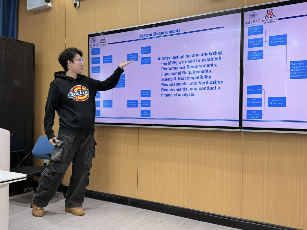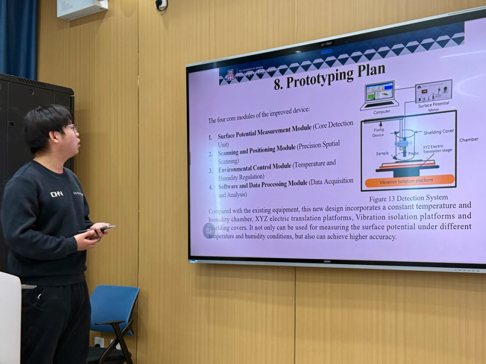 而这几场汇报的台前幕后,正是学院“跨学科双毕业设计”培养模式的核心环节:即第七学期美国亚利桑那大学开设的高阶课程跨学科设计A(ENGR 498A)率先启动,第八学期接续中方毕业设计,形成跨学年“产教学研创”五位一体的实践教学体系。体系以“前端方法论奠基—中间方案攻坚—终端实物验证”为主线,由外方导师、企业导师与校内跨学院导师联合命题,师生组成“三方协同团队”,直面学术前沿难题,全过程贯穿国际化与跨学科深度融合的育人理念。