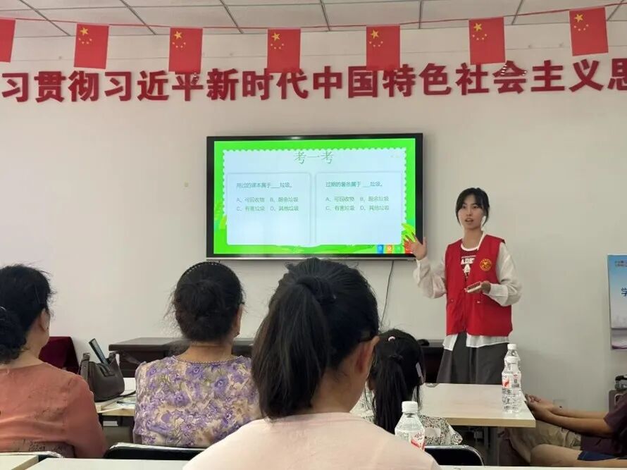 志愿者联动八个社区开展沉浸式实践,通过多元场景培育综合素养。在慧轩家园“模拟法庭”里,孩子们身披法袍敲响法槌,在角色扮演中体悟公平正义;在华城景苑的“环保冰箱贴工坊”中,废旧材料经巧手重塑,创意与绿色理念碰撞出低碳火花;在怡和新村的老党员课堂中,一段段红色故事入耳入心,把信仰种子播进童稚心田。